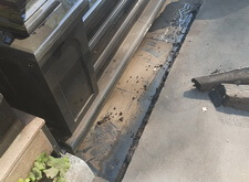 В ходе работ возникло небольшое недопонимание между нами и администрацией кладбища. Нас попросили убрать выступающую на проезжую часть площадь прилежащей территории. Конфликт был урегулирован, мы немного подрезали гранит и положили в образовавшуюся нишу холодный асфальт.